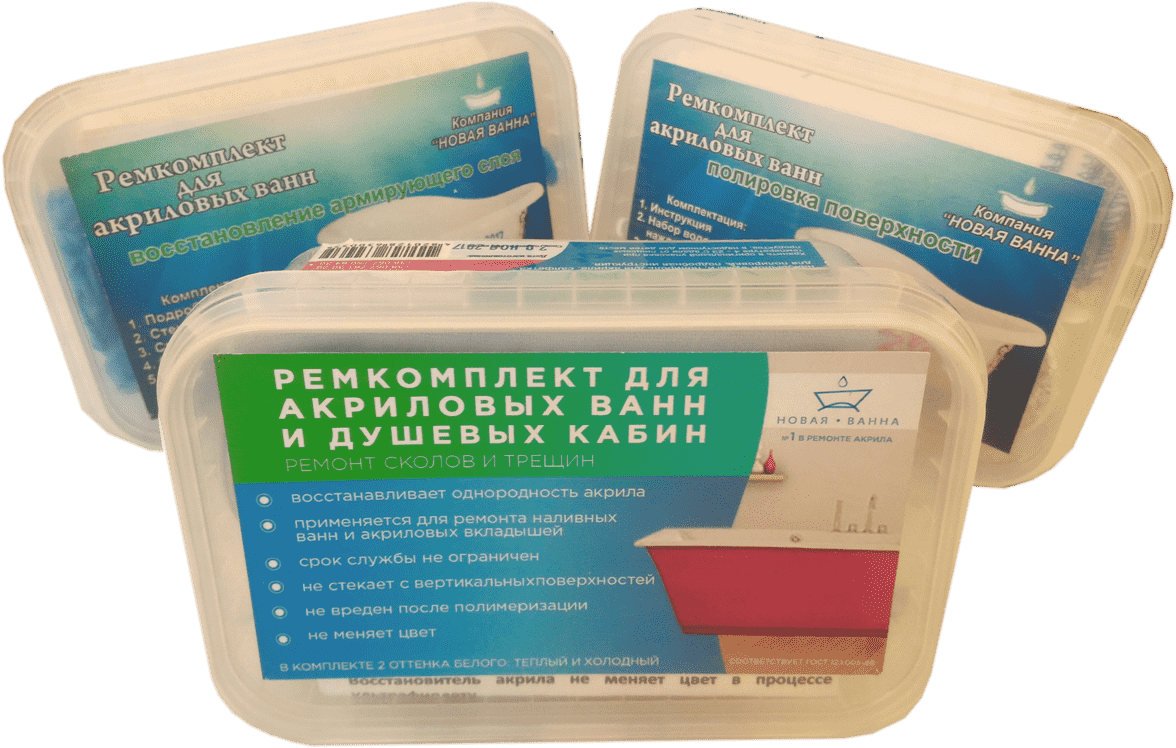 - Используйте ремкомплект для ремонта сколов и трещин акриловых ванн;